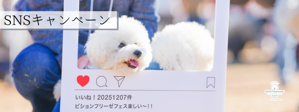 ビションフリーゼフェスティバルの楽しい一日を撮影してハッシュタグ「#ビションフリーゼフェス2026SPRING」をつけてInstagramやTwitter,Facebookに投稿して景品をGETしよう!!!