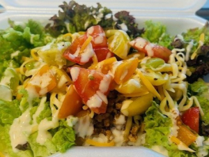 辛くないミートに野菜をたっぷりのせたタコライスです