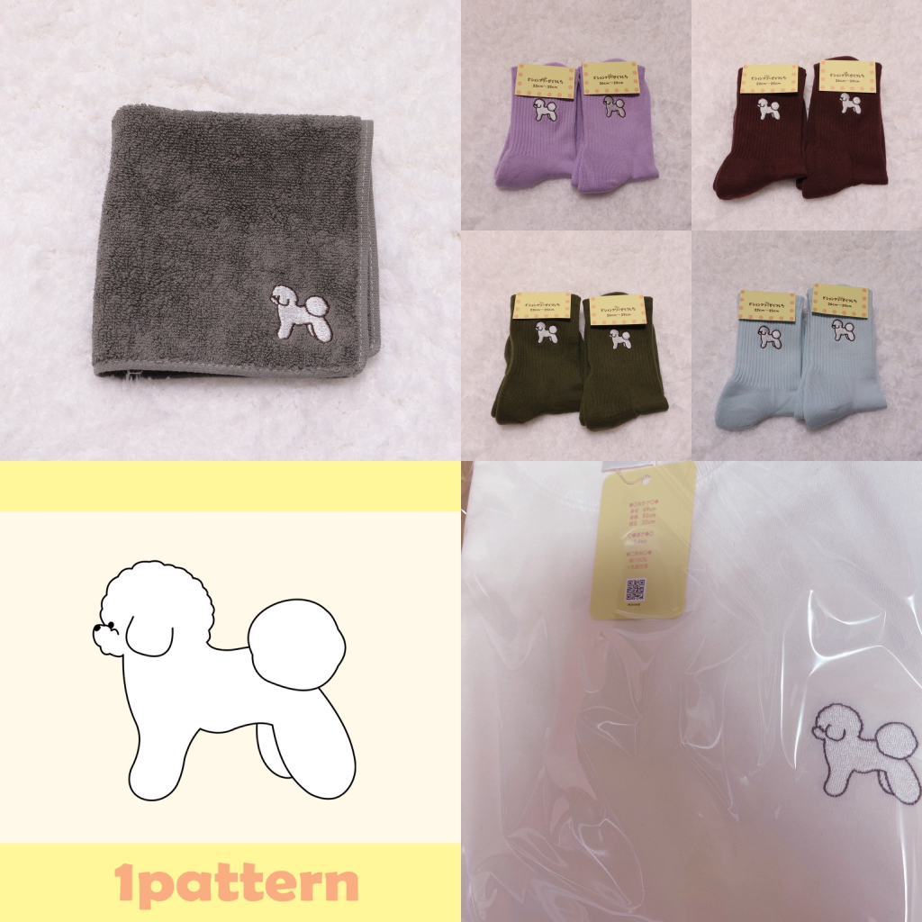 オリジナルイラストの靴下、ポーチ、ハンカチ、アクリルキーホルダー、ステッカー、Tシャツ等を販売しております🐶ᩚ❤️🔥 本イベントにはビションフリーゼ1色のグッズを持参いたします🙌🏻 売上の一部は我が家の看板犬がお世話になっていた保護団体様へ寄付しております。